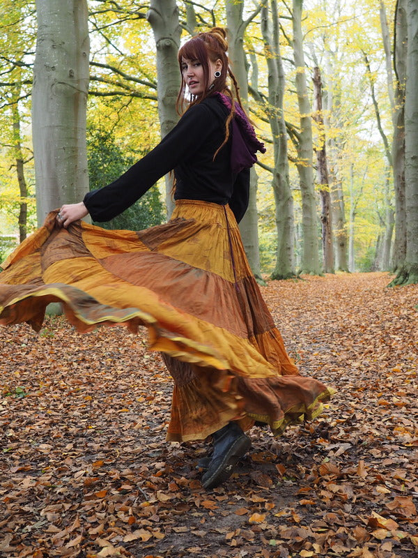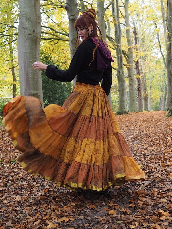 Zijden Gypsy rok Bizar gave vrouwelijke Gypsy, Bohemian kleurrijke rok gemaakt van Upcycled Sari Zijde. Ontzettend mooi! Door de lichtval is de kleur van de... Lees meer