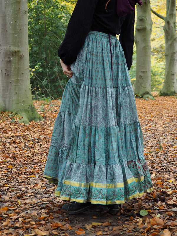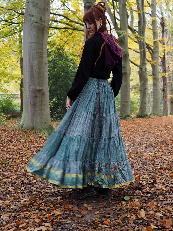 Zijden Gypsy rok Bizar gave vrouwelijke Gypsy, Bohemian kleurrijke rok gemaakt van Upcycled Sari Zijde. Ontzettend mooi! Door de lichtval is de kleur van de... Lees meer