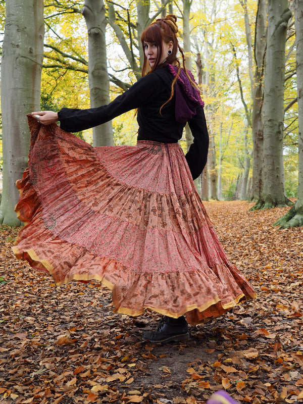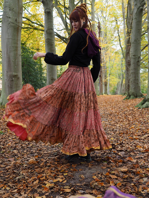 Zijden Gypsy rok Bizar gave vrouwelijke Gypsy, Bohemian kleurrijke rok gemaakt van Upcycled Sari Zijde. Ontzettend mooi! Door de lichtval is de kleur van de... Lees meer