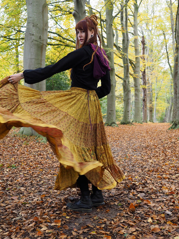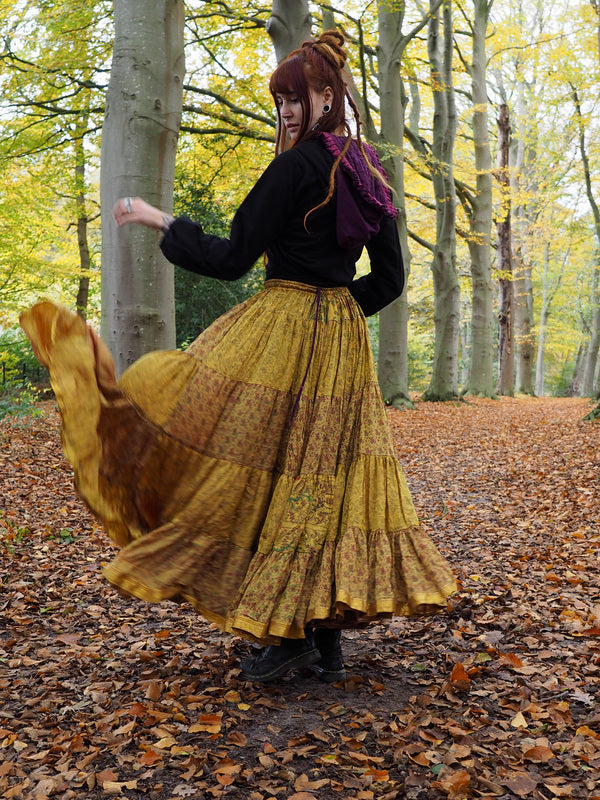 Zijden Gypsy rok Bizar gave vrouwelijke Gypsy, Bohemian kleurrijke rok gemaakt van Upcycled Sari Zijde. Ontzettend mooi! Door de lichtval is de kleur van de... Lees meer