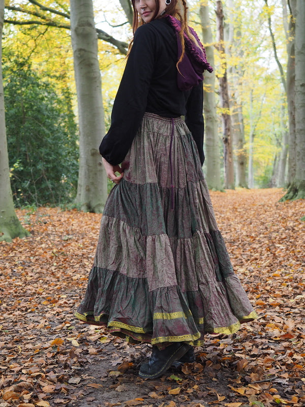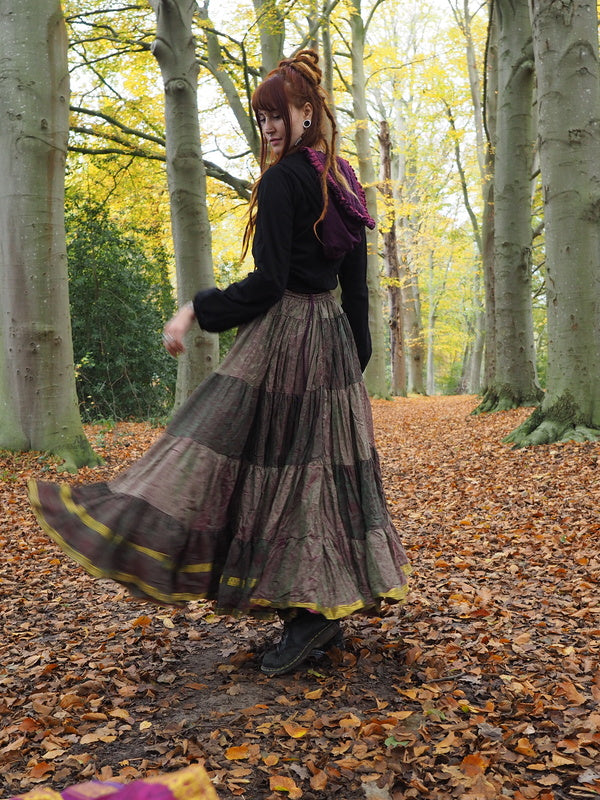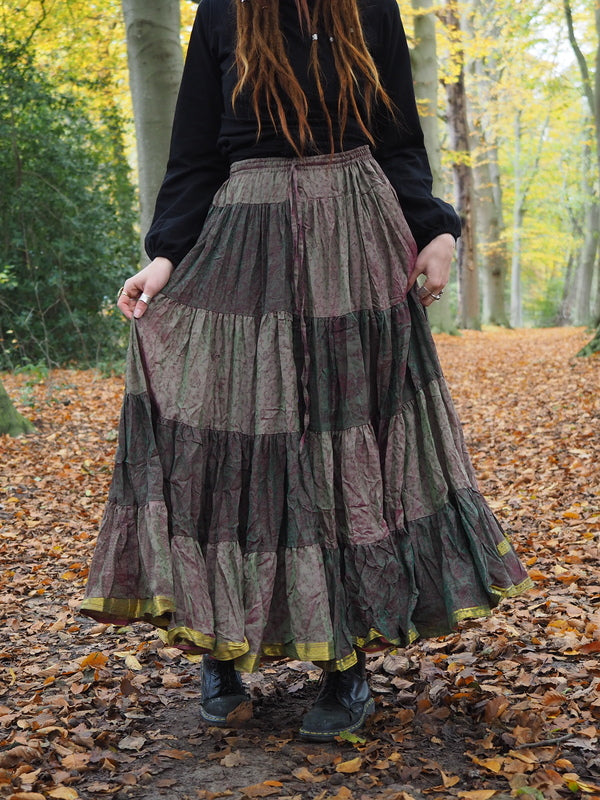 Zijden Gypsy rok Bizar gave vrouwelijke Gypsy, Bohemian kleurrijke rok gemaakt van Upcycled Sari Zijde. Ontzettend mooi! Door de lichtval is de kleur van de... Lees meer