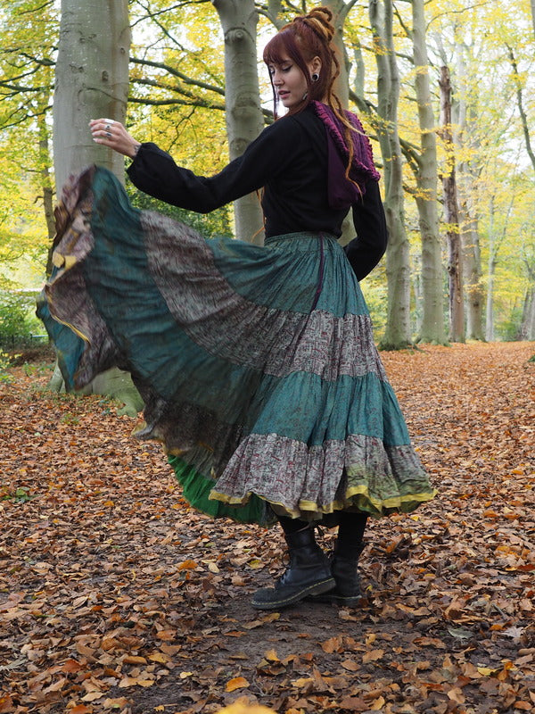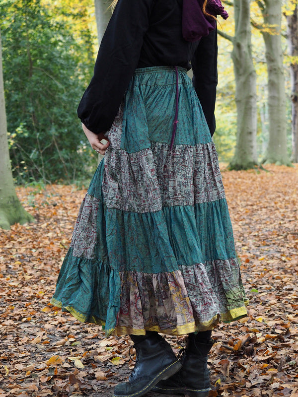 Zijden Gypsy rok Bizar gave vrouwelijke Gypsy, Bohemian kleurrijke rok gemaakt van Upcycled Sari Zijde. Ontzettend mooi! Door de lichtval is de kleur van de... Lees meer