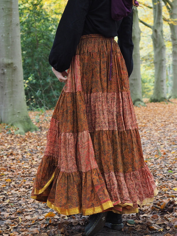 Zijden Gypsy rok Bizar gave vrouwelijke Gypsy, Bohemian kleurrijke rok gemaakt van Upcycled Sari Zijde. Ontzettend mooi! Door de lichtval is de kleur van de... Lees meer