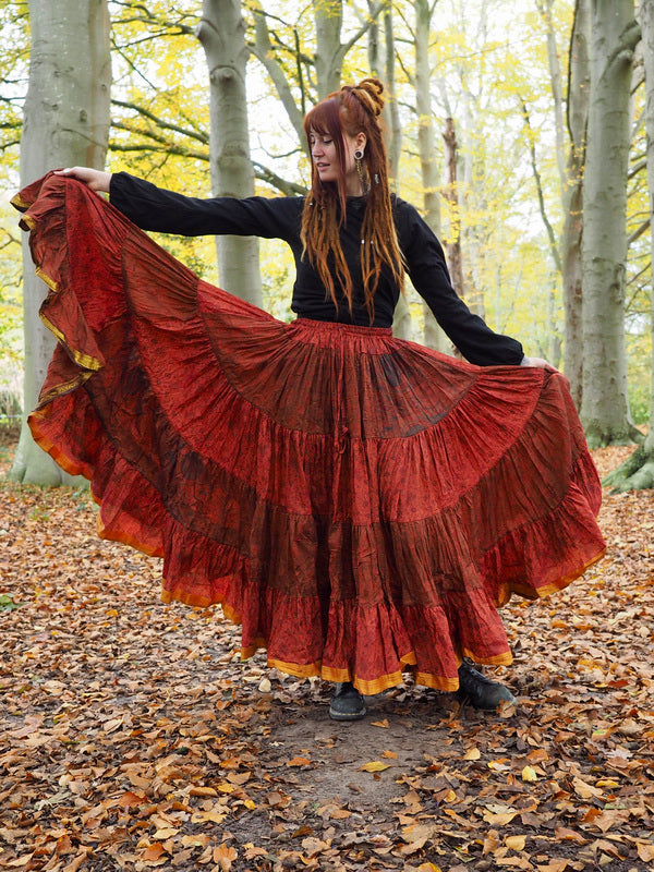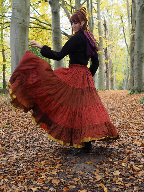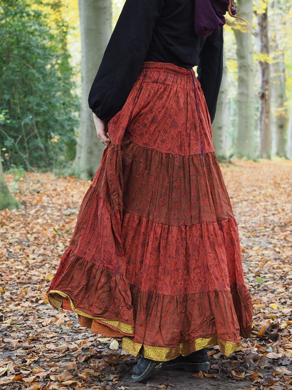 Zijden Gypsy rok Bizar gave vrouwelijke Gypsy, Bohemian kleurrijke rok gemaakt van Upcycled Sari Zijde. Ontzettend mooi! Door de lichtval is de kleur van de... Lees meer
