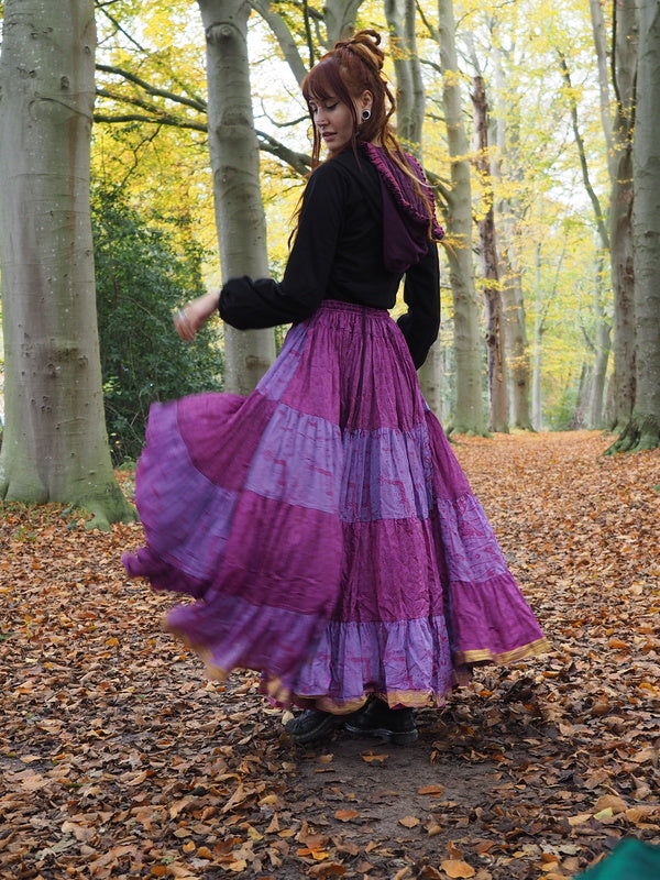 Zijden Gypsy rok Bizar gave vrouwelijke Gypsy, Bohemian kleurrijke rok gemaakt van Upcycled Sari Zijde. Ontzettend mooi! Door de lichtval is de kleur van de... Lees meer
