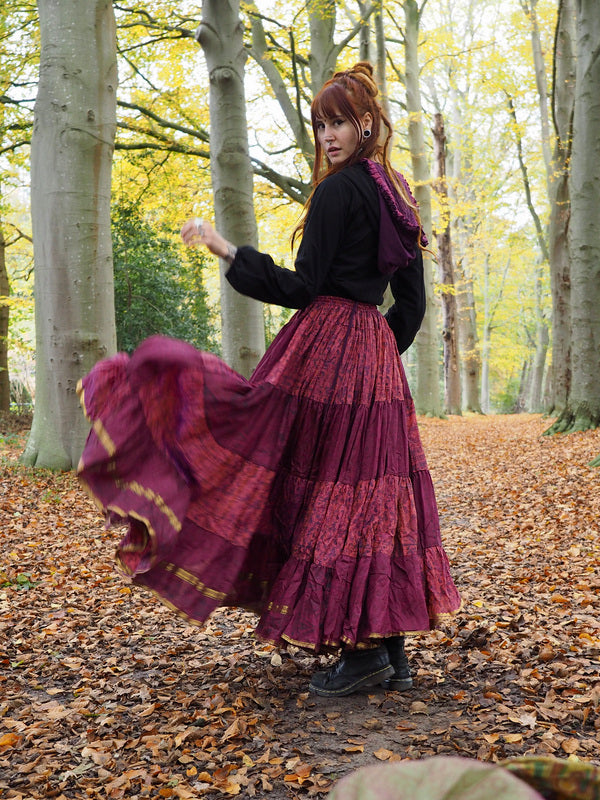 Zijden Gypsy rok Bizar gave vrouwelijke Gypsy, Bohemian kleurrijke rok gemaakt van Upcycled Sari Zijde. Ontzettend mooi! Door de lichtval is de kleur van de... Lees meer