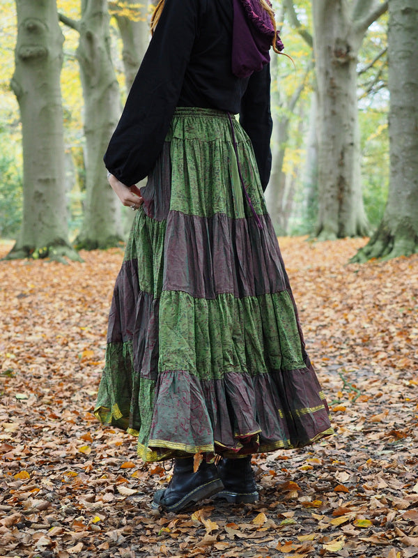 Zijden Gypsy rok Bizar gave vrouwelijke Gypsy, Bohemian kleurrijke rok gemaakt van Upcycled Sari Zijde. Ontzettend mooi! Door de lichtval is de kleur van de... Lees meer