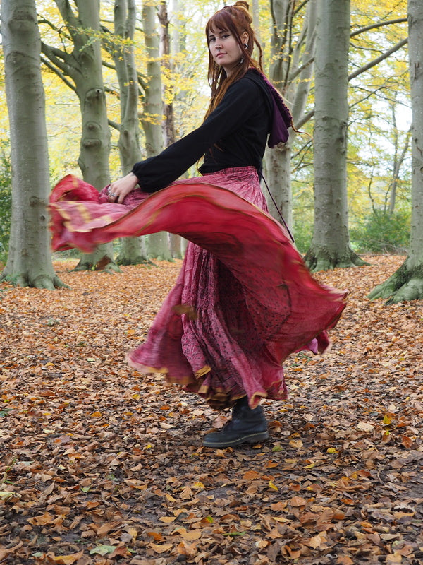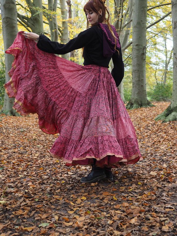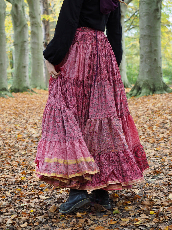 Zijden Gypsy rok Bizar gave vrouwelijke Gypsy, Bohemian kleurrijke rok gemaakt van Upcycled Sari Zijde. Ontzettend mooi! Door de lichtval is de kleur van de... Lees meer