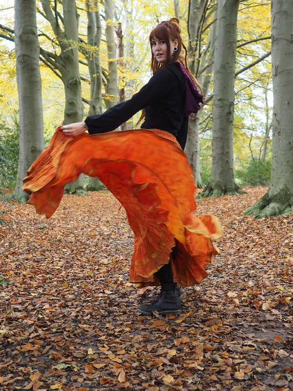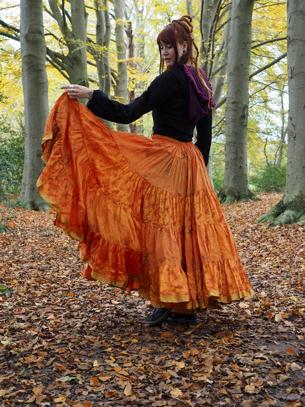 Zijden Gypsy rok Bizar gave vrouwelijke Gypsy, Bohemian kleurrijke rok gemaakt van Upcycled Sari Zijde. Ontzettend mooi! Door de lichtval is de kleur van de... Lees meer