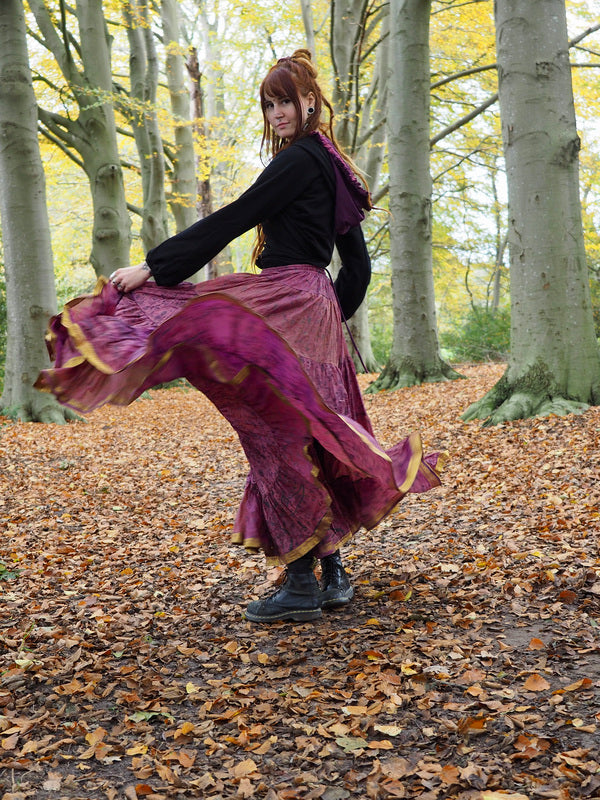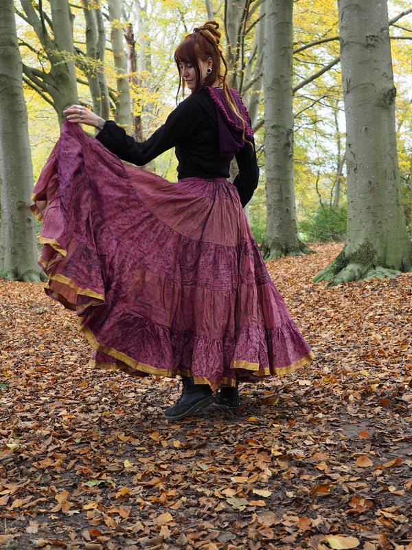 Zijden Gypsy rok Bizar gave vrouwelijke Gypsy, Bohemian kleurrijke rok gemaakt van Upcycled Sari Zijde. Ontzettend mooi! Door de lichtval is de kleur van de... Lees meer