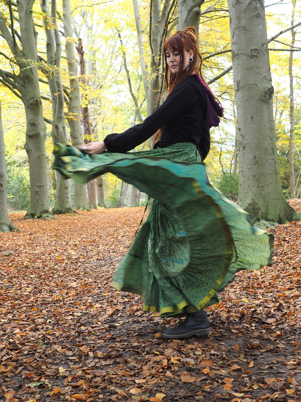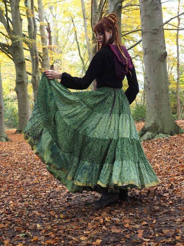 Zijden Gypsy rok Bizar gave vrouwelijke Gypsy, Bohemian kleurrijke rok gemaakt van Upcycled Sari Zijde. Ontzettend mooi! Door de lichtval is de kleur van de... Lees meer