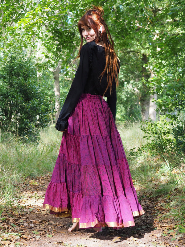 Zijden Gypsy rok Bizar gave vrouwelijke Gypsy, Bohemian kleurrijke rok gemaakt van Upcycled Sari Zijde. Ontzettend mooi! Door de lichtval is de kleur van de... Lees meer