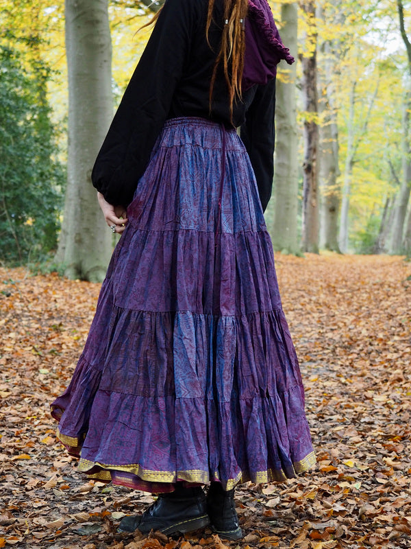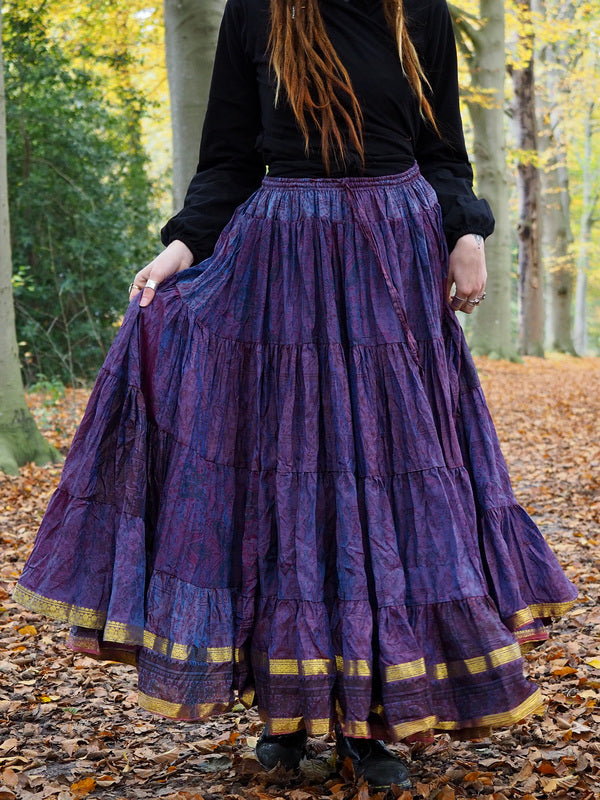 Zijden Gypsy rok Bizar gave vrouwelijke Gypsy, Bohemian kleurrijke rok gemaakt van Upcycled Sari Zijde. Ontzettend mooi! Door de lichtval is de kleur van de... Lees meer